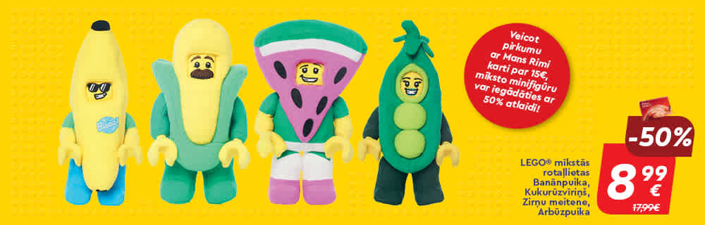 For every 15 EUR spent with Rimi loyalty card - get a flowpack with 4 Lego stickers for free and collect 140 Lego stickers with all the iconic LEGO® Minifigures.