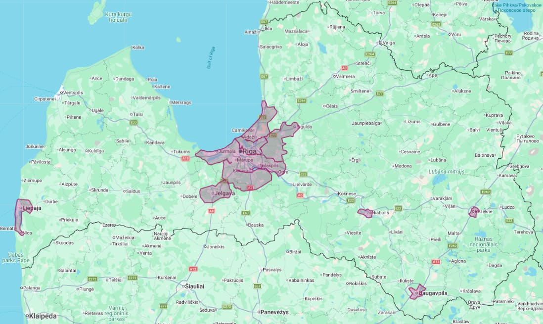 - Rīga, Mārupe, Jūrmala, Olaine, Jaunmārupe