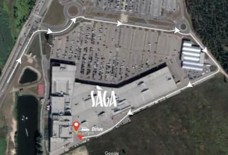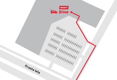 2. Drive stāvvietas atrodas t/c Sāga otrā pusē, pie Rimi piegāžu zonas (sk. karti)