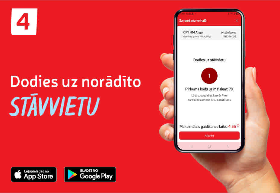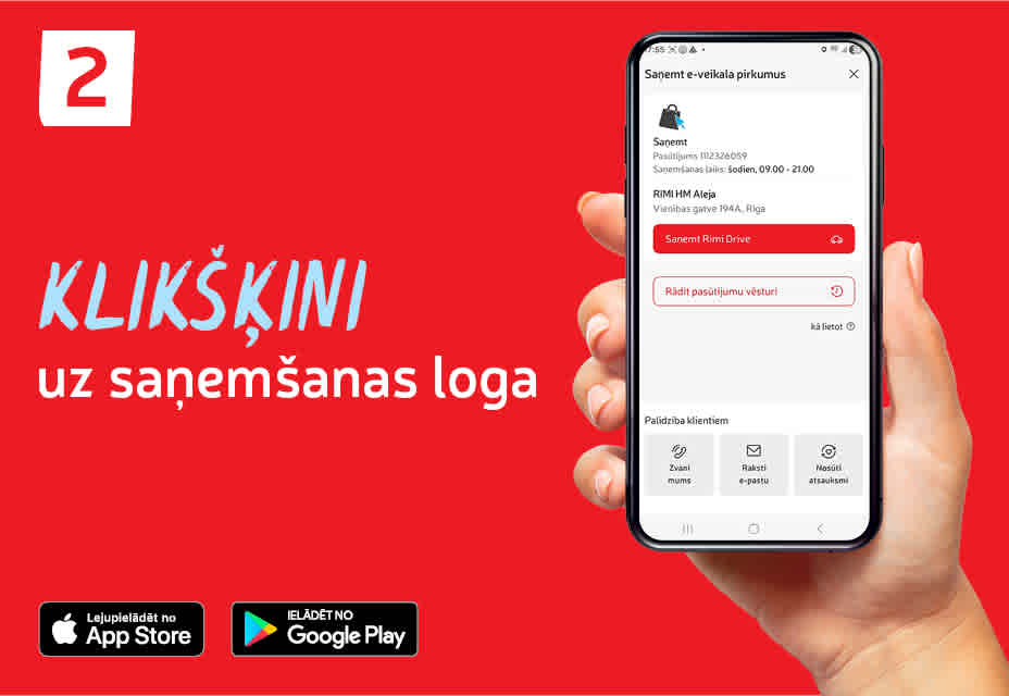 Te apkopojām aprakstu un bildes par to, kur un kā vari saņemt savus pirkumus.Pirkumu saņemšanai Tev būs nepieciešama Rimi lietotne
