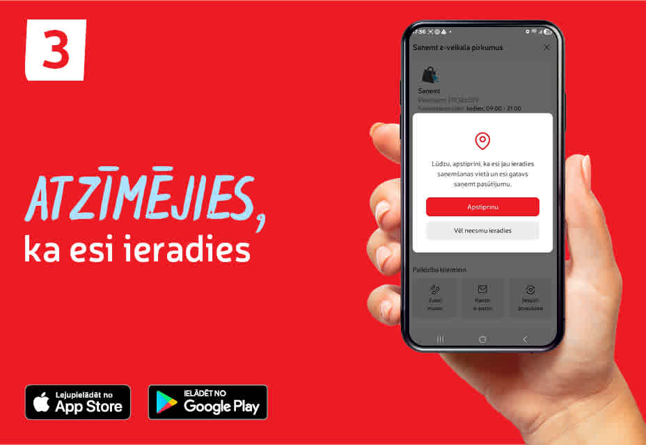 3. Rimi aplikācijā atzīmējies, ka esi klāt (saņemšana iespējama tikai, izmantojot lietotni)