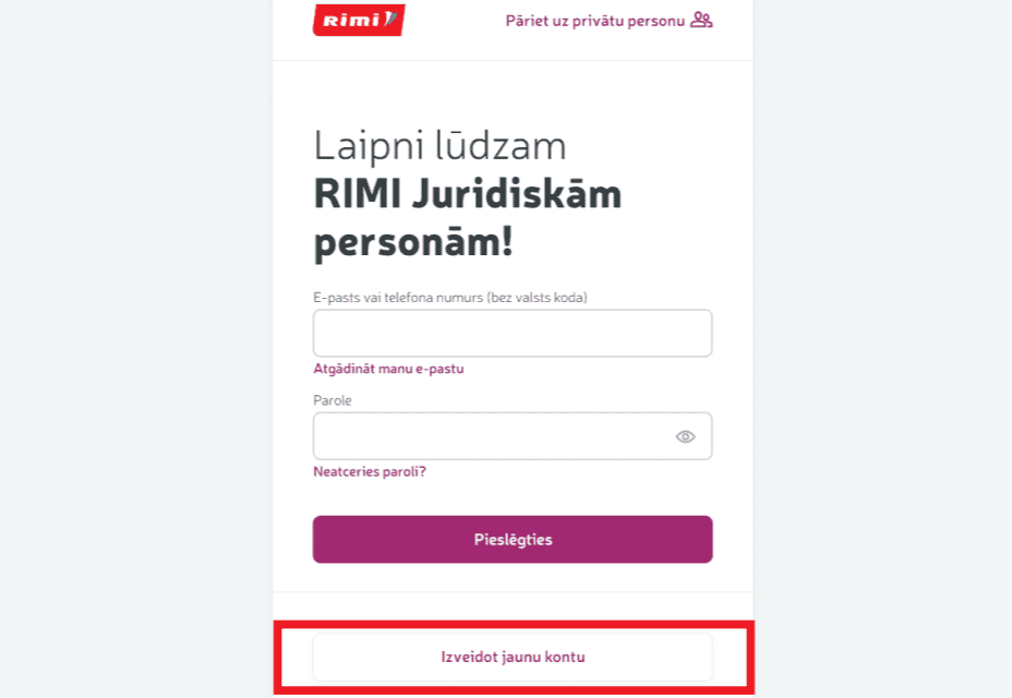 2. Zemāk izvēlieties pogu "Izveidot jaunu kontu"