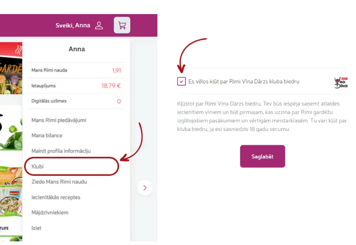 Rimi Vīna dārza klubam var pievienoties savā Mans Rimi profilā. Seko zemāk norādītājiem soļiem, lai pievienotos vīna klubam!