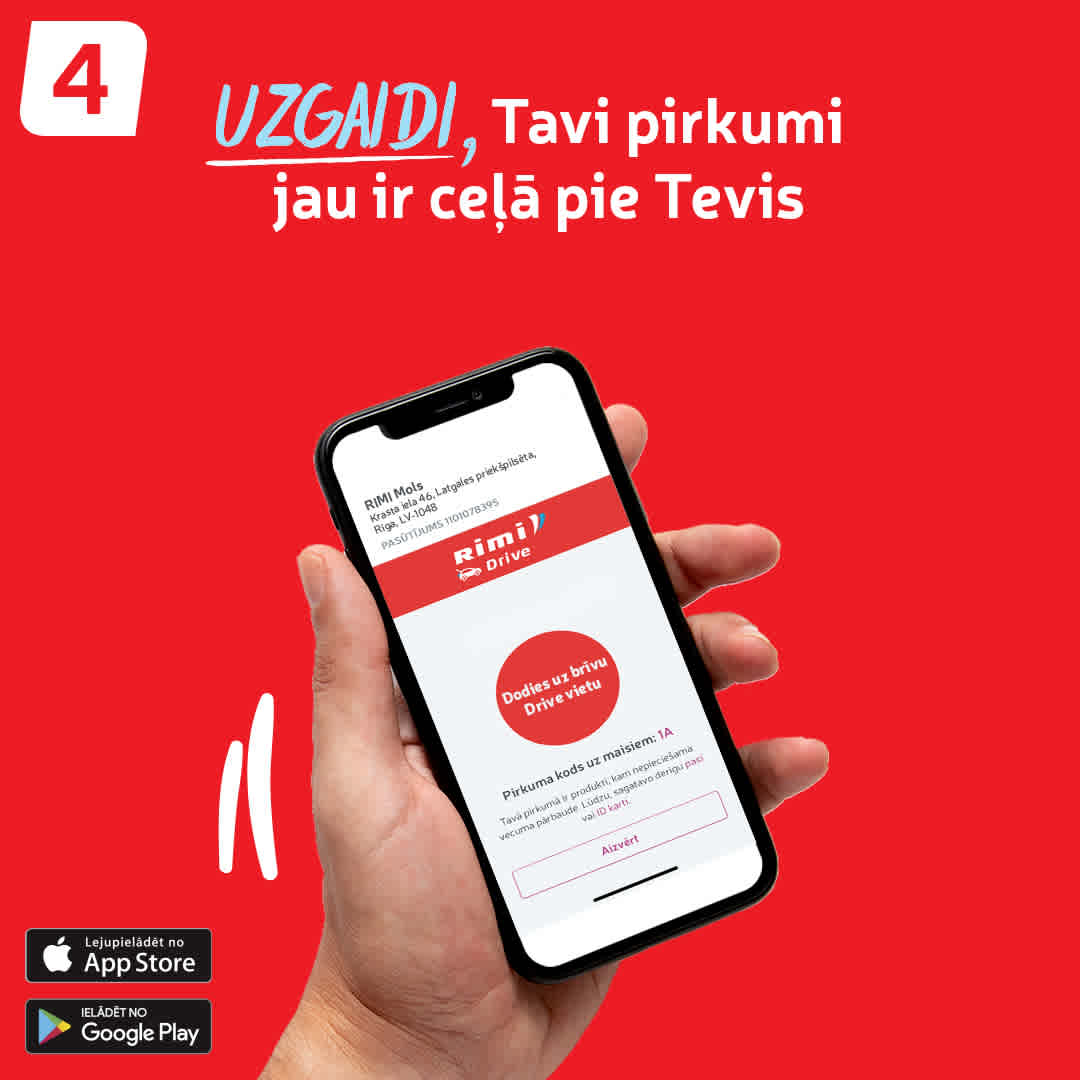 PIRKUMU SAŅEMŠANA MOLA DRIVE IESPĒJAMA TIKAI, IZMANTOJOT RIMI APLIKĀCIJU!