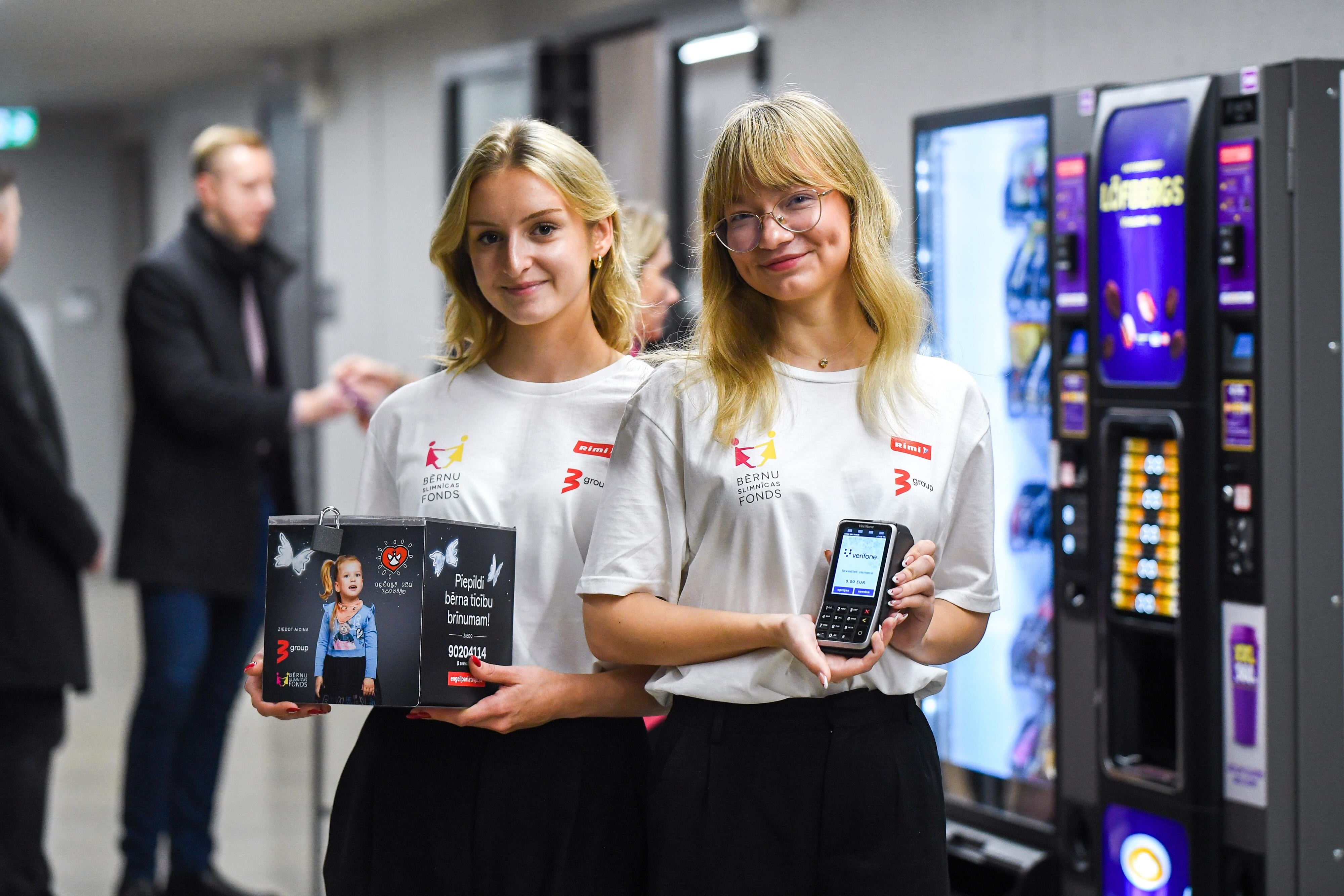 - Rimi veikalos pie kasēm izvietotajās ziedojumu kastītēs;