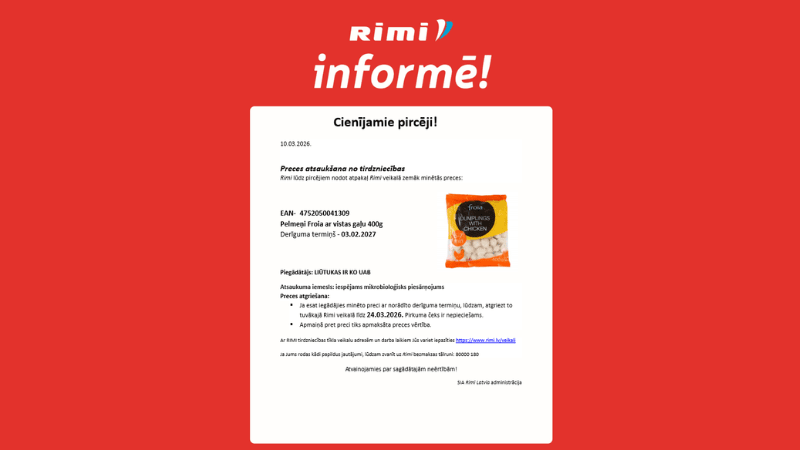 Ja Jums rodas kādi papildus jautājumi, lūdzam zvanīt uz Rimi bezmaksas tālruni: 8000 0180