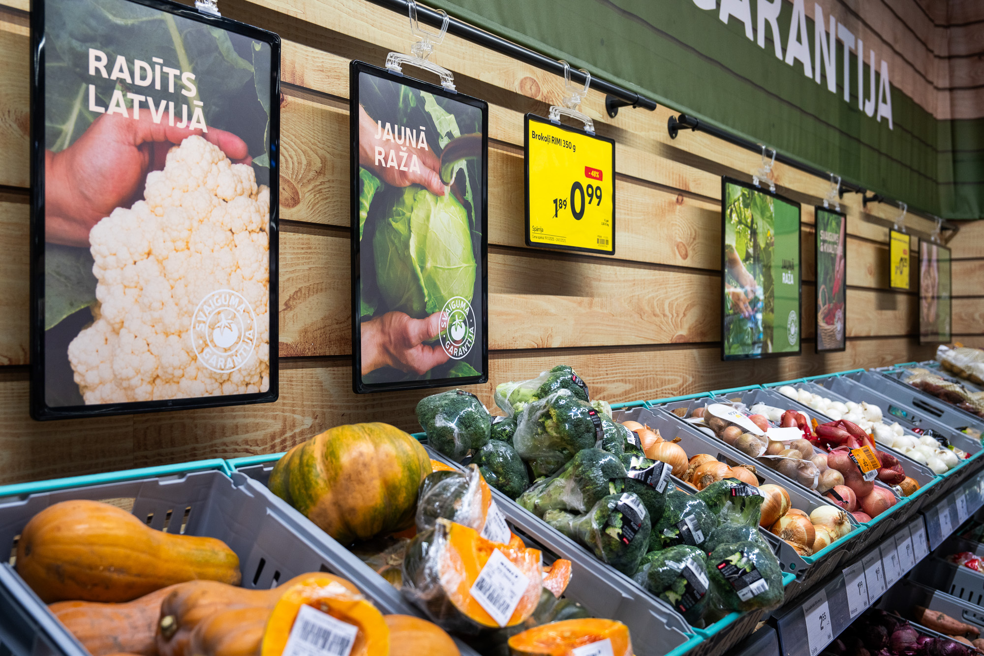 Arī digitālie risinājumi jaunā koncepta veikalos ir daudz pieejamāki – pašapkalpošanās kases, digitālie svari un moderni ekrāni, kuros redzami izdevīgākie piedāvājumi un informācija par akcijām. Šie rīki palīdz ietaupīt gan klientu laiku un naudu, gan atvieglo veikala komandas ikdienas darbu. Veikala izkārtojums ir kļuvis vienkāršāks un vizuāli sakārtotāks – samazināts liekais vizuālais troksnis, norādes kļuvušas skaidrākas un praktiskāk izvietotas, savukārt akciju piedāvājumi ir vieglāk pamanāmi.