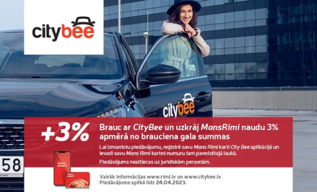 Līdz 24. aprīlim, brauc ar CityBee un uzkrāj Mans Rimi naudu 3% apmērā no brauciena summas!