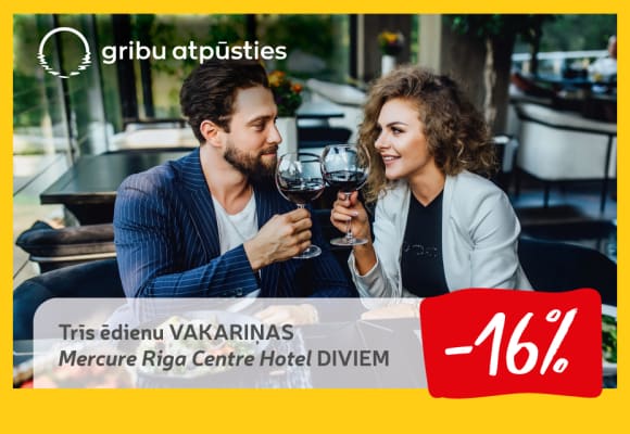 Lielisks piedāvājums no gribuatpusties.lv - ar kodu RIMIVAKARINAS saņem 16% atlaidi trīs ēdienu vakariņām divām personām + prosecco pudele restorānā The Traveller ,Mercure Riga Centre Hotel ★★★★