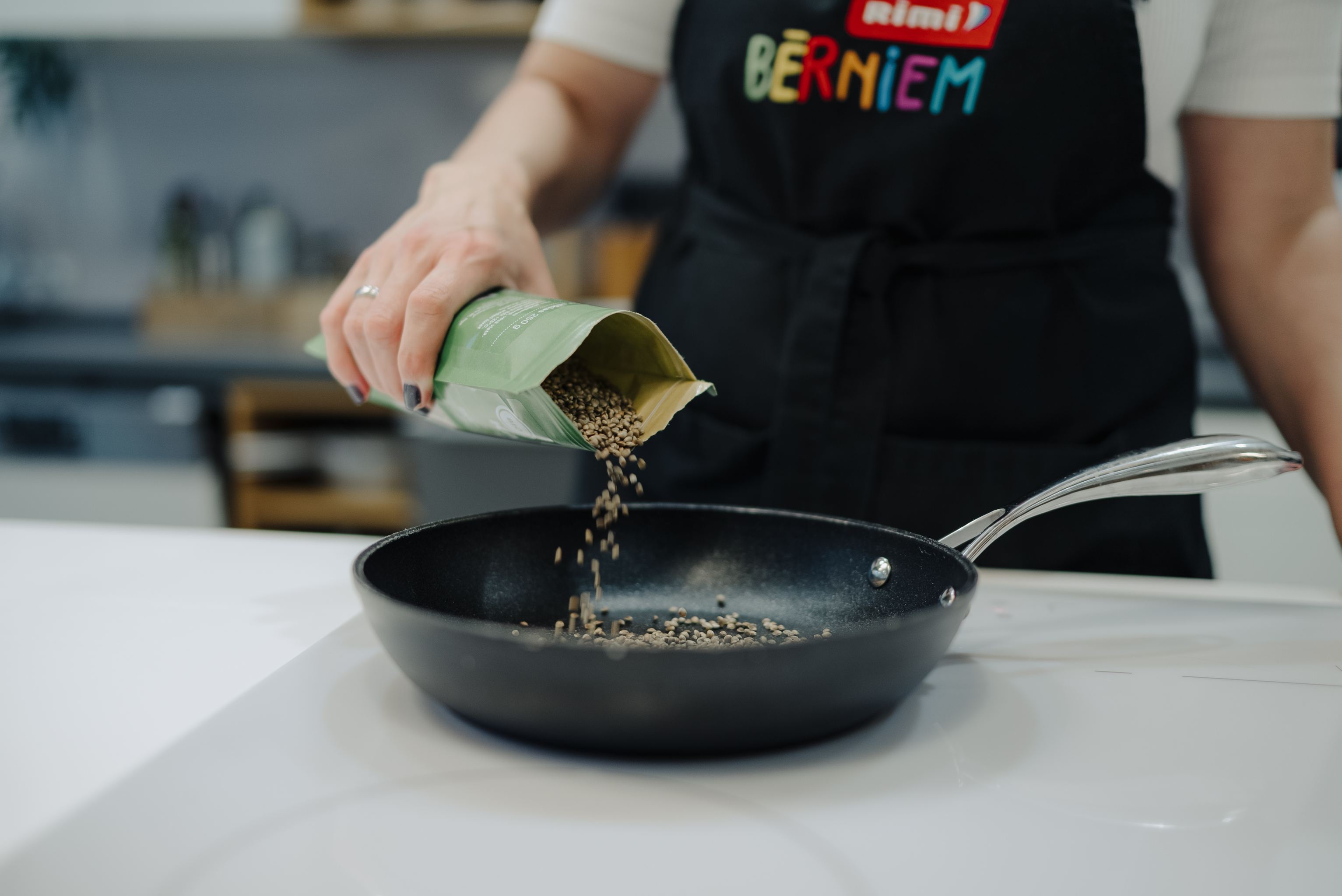 - Kaņepju sēklas apgrauzdē pannā līdz tām izdalās patīkama smarža.