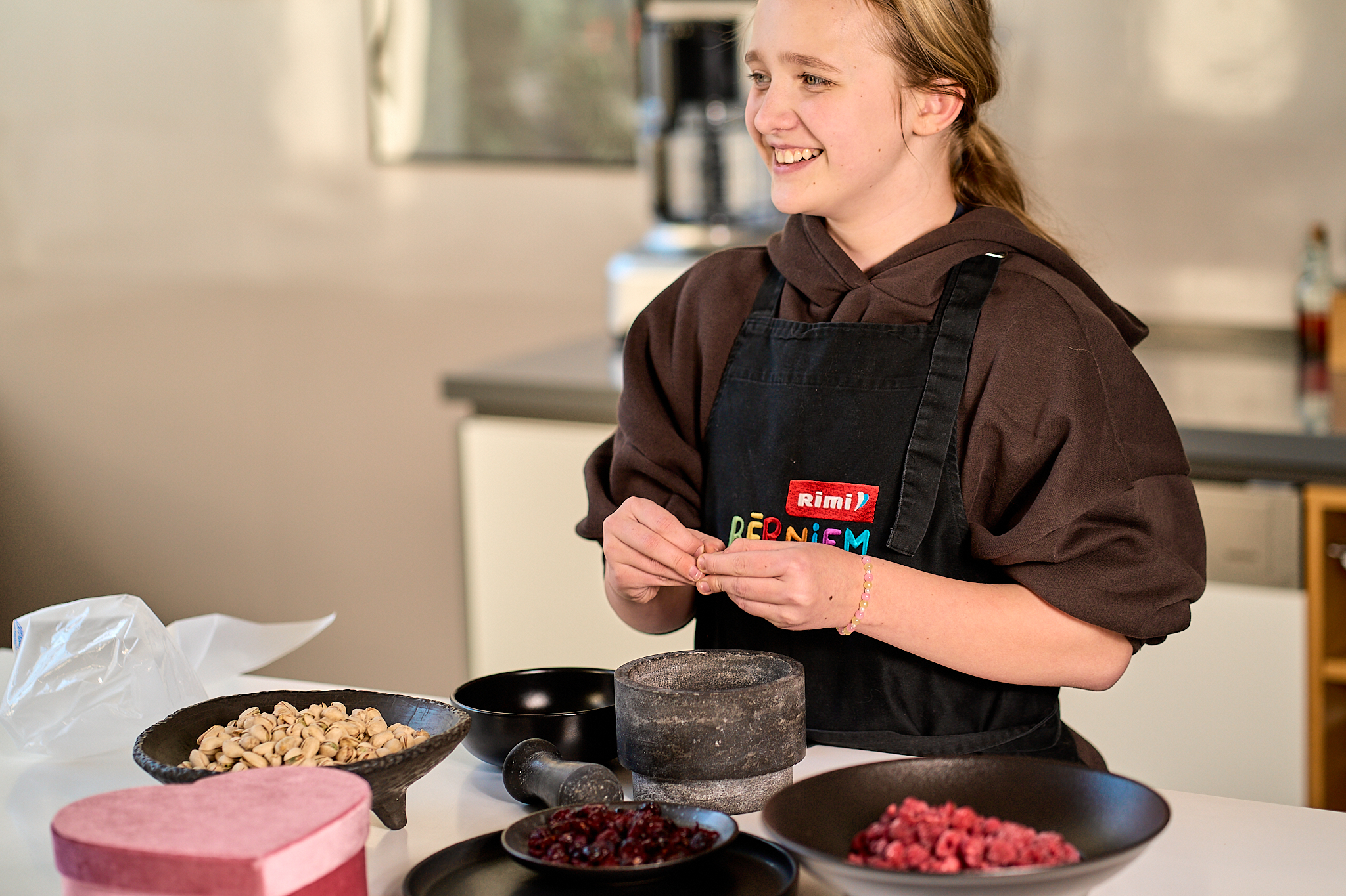 Šokolādes sirdi gatavo Rimi Bērniem eksperte Sāra Smildziņa.