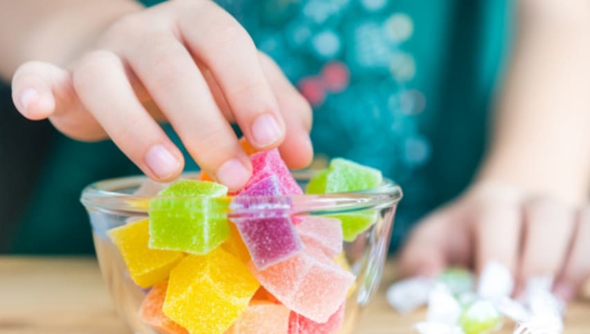 - želejkonfektēs (100 g) – 10–11 tējkarotes cukura;