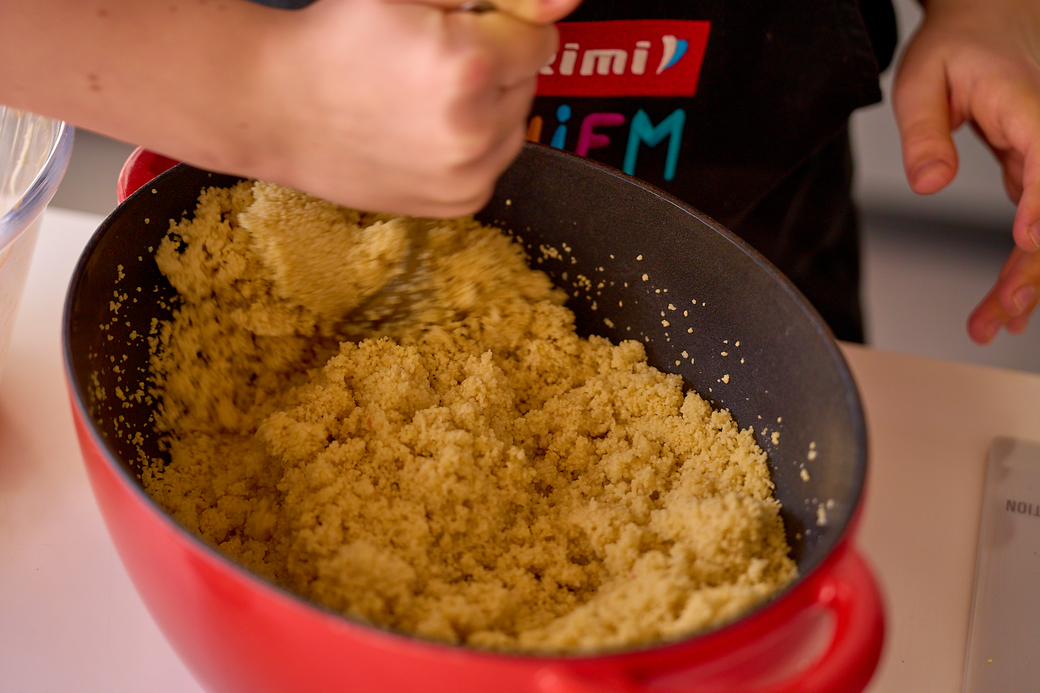 - Sajauc kuskusu ar burkāniem un dīgstiem.