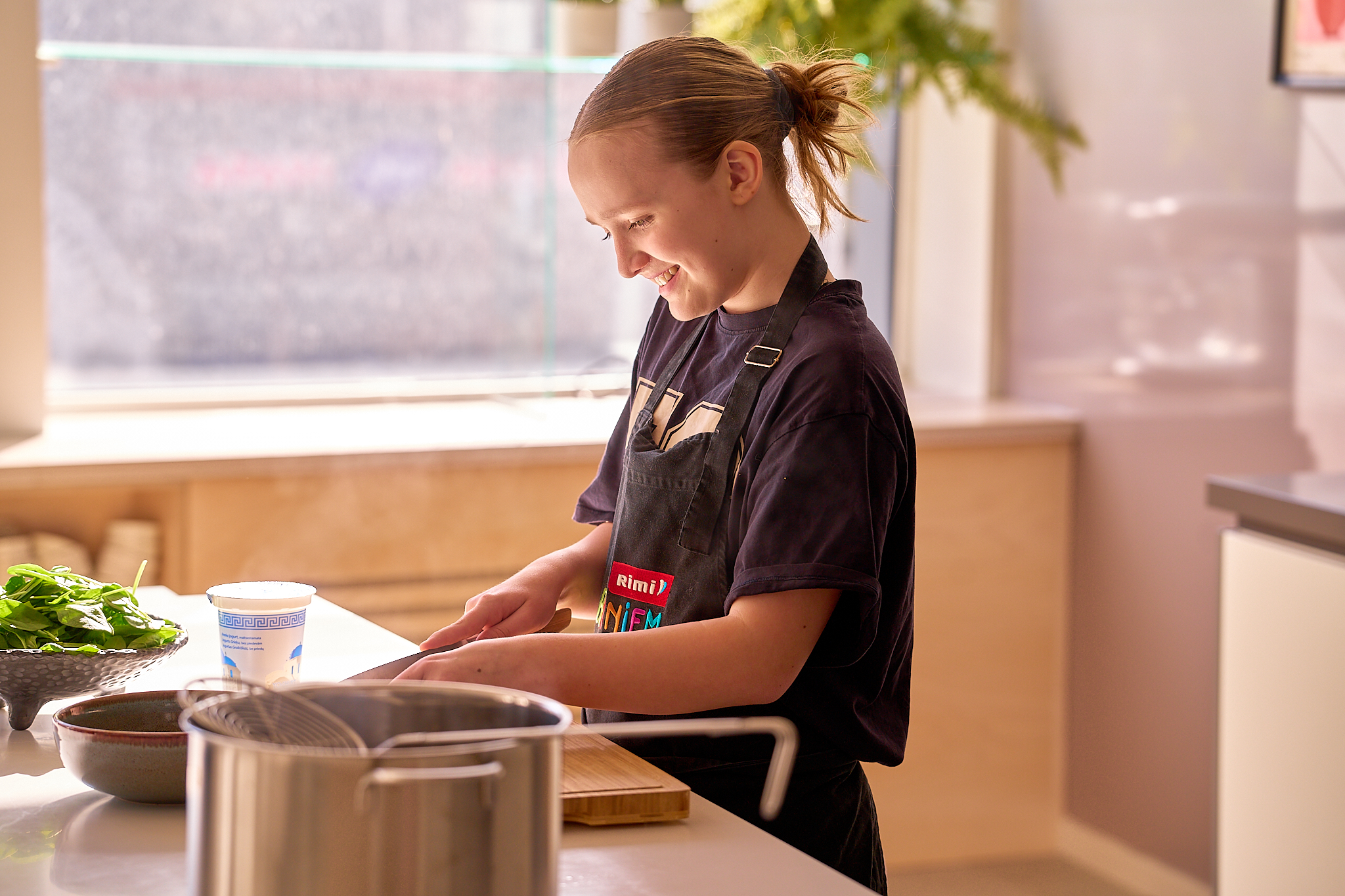 - Pievieno rīvēto sieru un sajauc ar jogurtu.