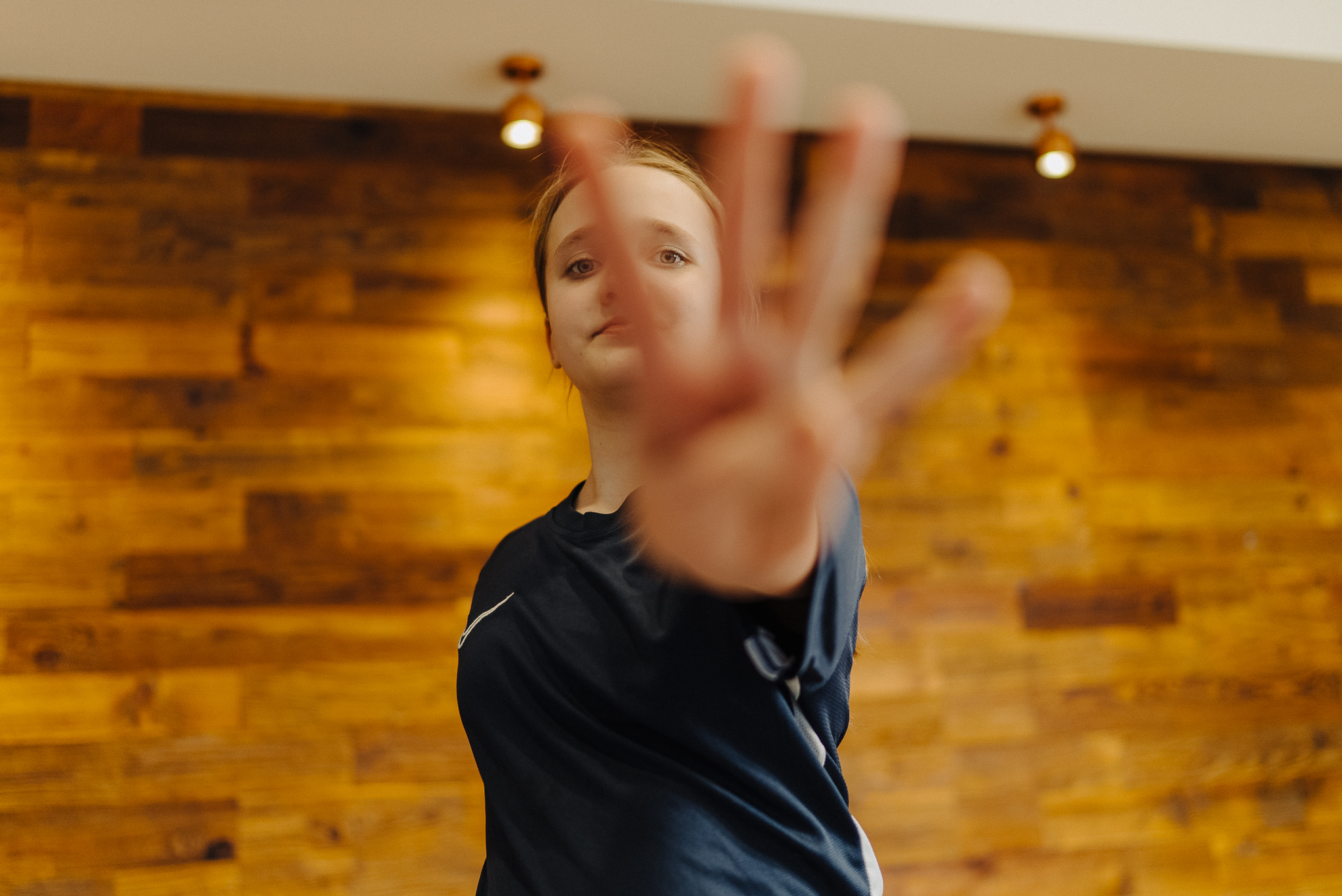- Ieelpo, aizturi elpu un pakāpeniski noliec četrus pirkstus (4 sekundes). Izelpo, atkal aizturi elpu un pakāpeniski atbrīvo pirkstus.
