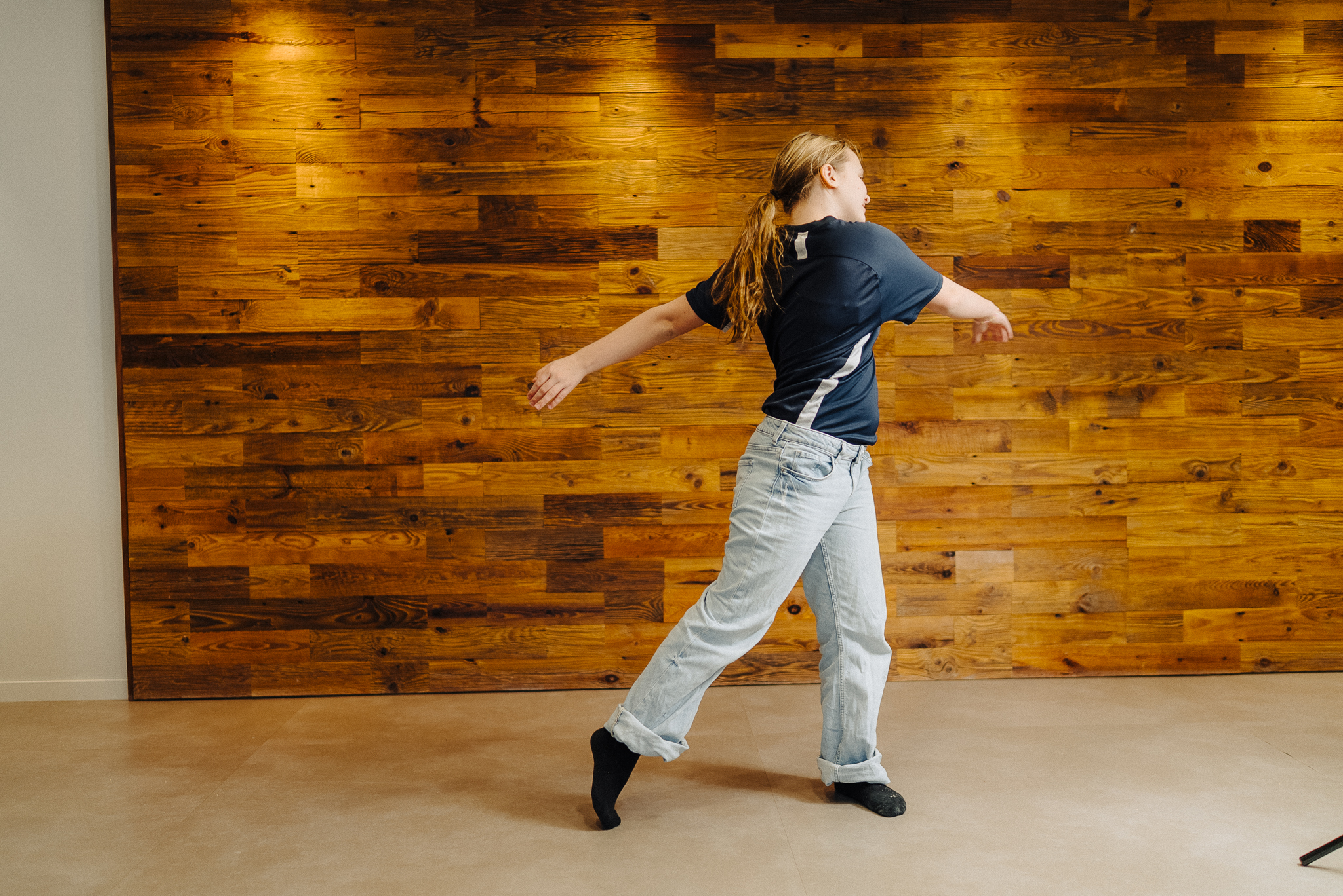 - Brīvi vēzē rokas uz vienu un otru pusi, ļaujot ķermenim kustēties līdzi. Vēzējot pa labi, nedaudz paceļas kreisā pēda, un otrādi.