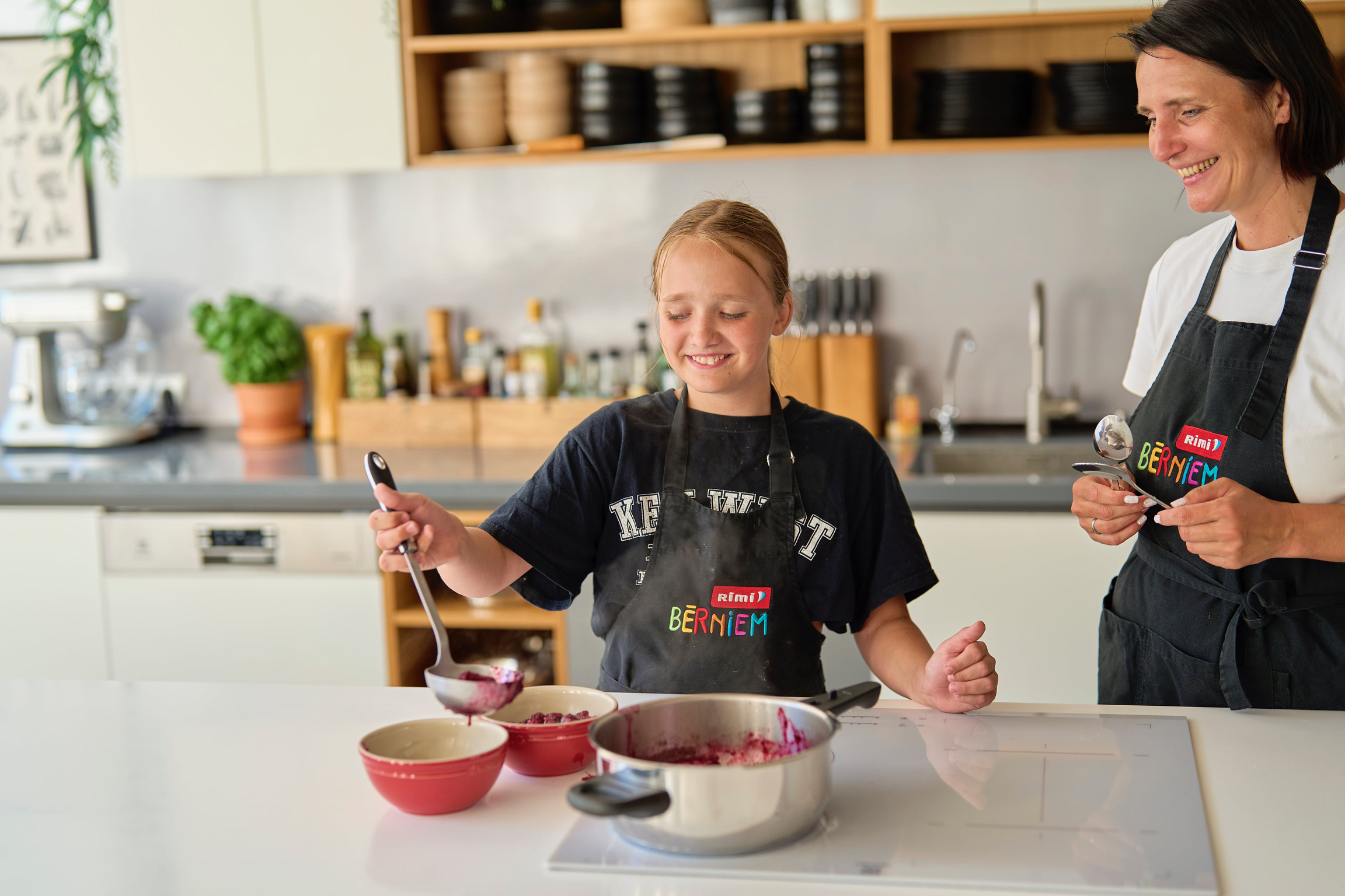 “Viegla un atsvaidzinoša vasaras klasika – silta vai auksta melleņu zupa ar gardām klimpām. Šis saldēdiens ir lielisks veids, kā uzņemt ogu labās vielas un vienlaikus palutināt sevi ar bērnības garšu,” gatavojot melleņu klimpas, komentē Rimi Bērniem eksperte Inga Akmentiņa-Smildziņa un viņas meita Sāra.